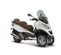 Stilbetont präsentiert sich der Piaggio MP3 Business in Schwarz Weiß und zieht mit feinster Metallic-Lackierung die Blicke auf sich. Chic, das glänzend graue Finish und die braune Sitzbamk mit den doppelten Steppnähten. Edel, die Fünfspeichen-Räder.