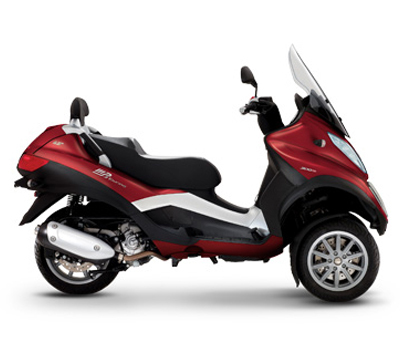 Das Modelkürzel „LT“ (Large Tread) bezeichnet dabei die Modelvariante des MP3, die aufgrund einer Spurverbreiterung und zusätzlichen Fußbremsanlage als zweispuriges Kraftfahrzeug homologiert ist. Das deutsche Fahrerlaubnisrecht ermöglicht somit das Führen des MP3 LT ohne Hubraumbegrenzung mit dem Autoführerschein. Helmpflicht für Fahrer und Beifahrer ist selbstverständlich.